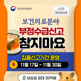 보건의료분야 정부지원금 부정수급 집중신고기간 운영