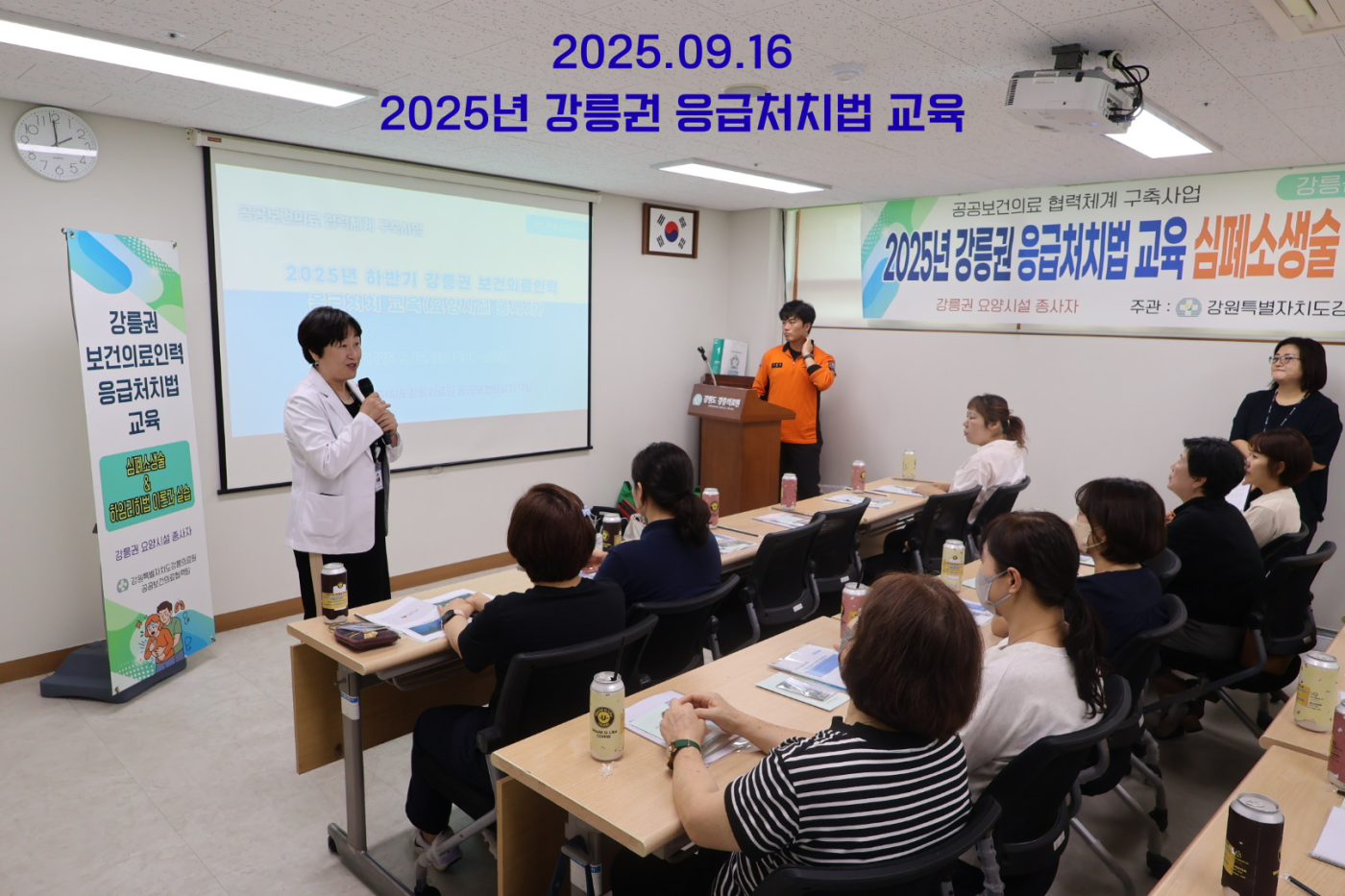 강릉의료원은 916() 오후 2시부터 4시까지 본원 2층 회의실에서 강릉권 요양시설 종사자들을 대상으로 ‘2025년 하반기 보건의료인력 응급처치법 교육을 실시했다.